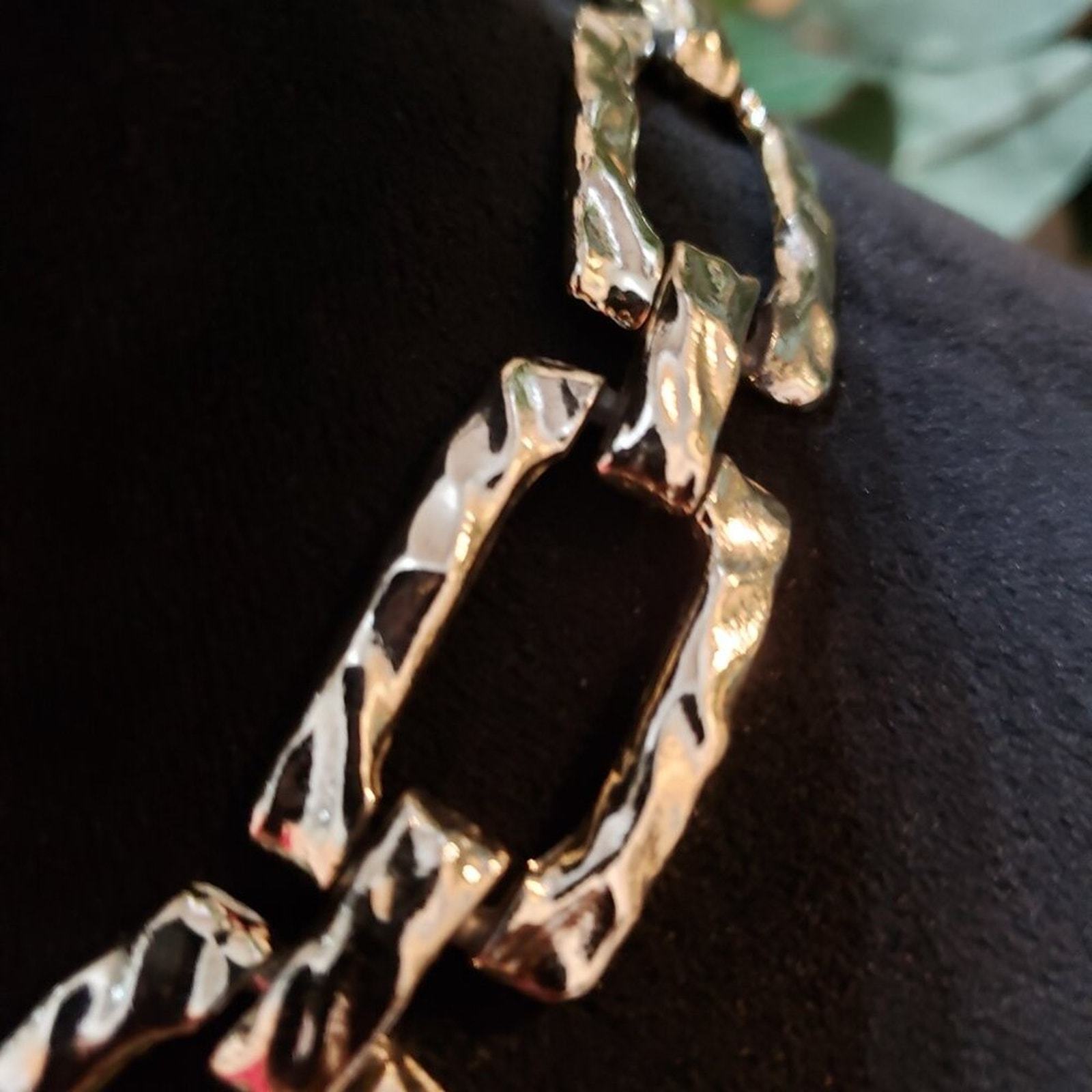 Womens Fashion Silver Tone Hammered Ripple Square Link Chain Necklace Jewelry.