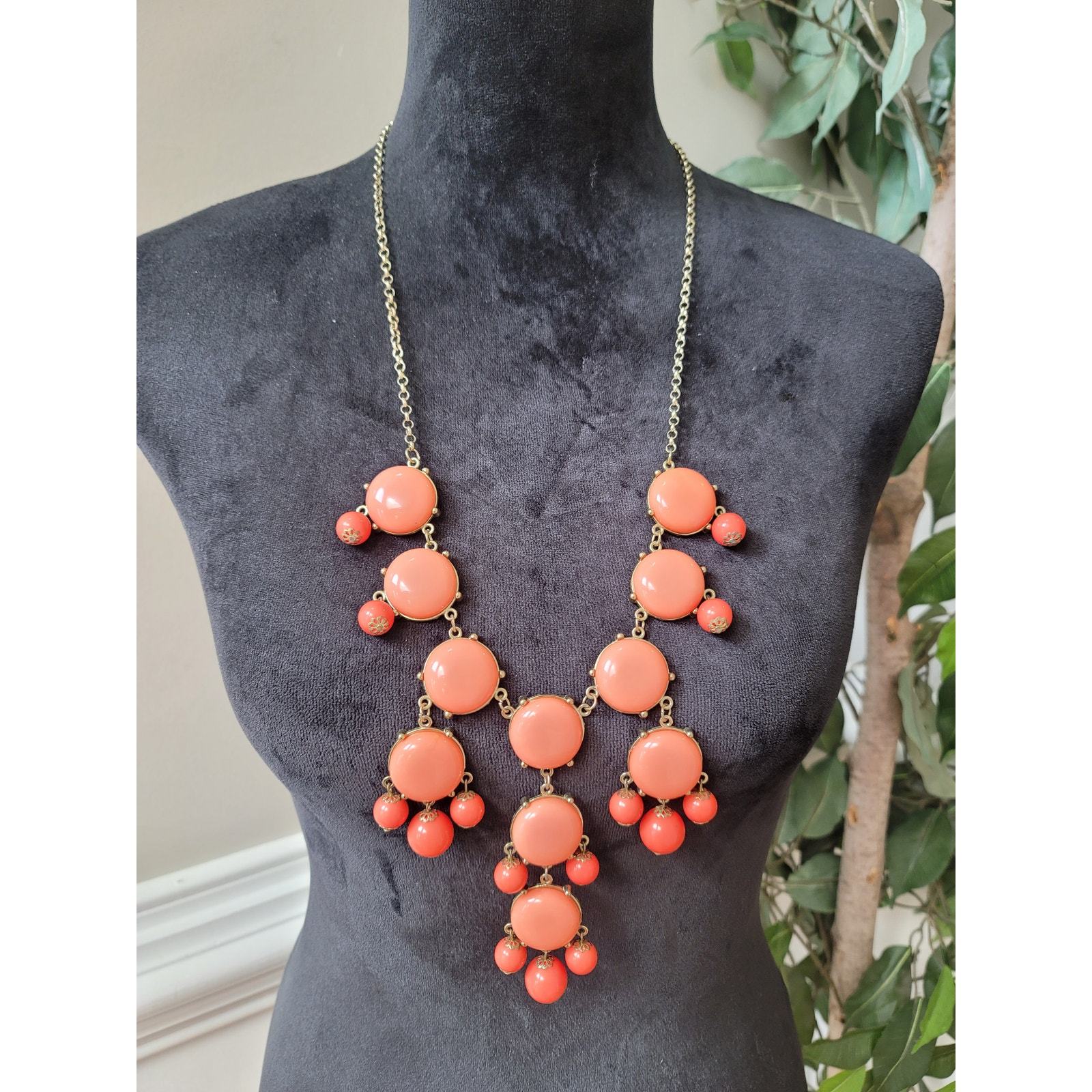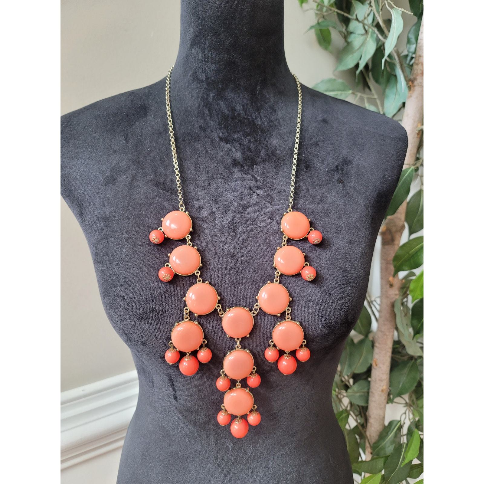Women's Coral Pendant Necklace with Round Beads and Gold Tone Chain