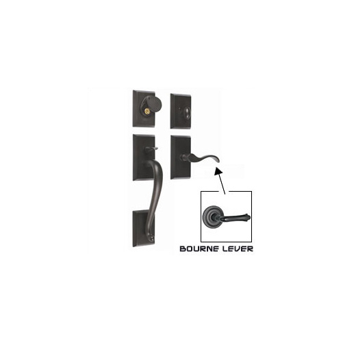 Features Savoy Handle Set with Bourne Lever Made with high quality material Specifications Finish: Oil Rubbed Bronze Lever Style: Bourne Lever Handle Style: Grip Latch Faceplate: Square Corner Mount: Sectional Strike: Square Corner Interconnected: No ADA Compliant: No UL Listed: No Keyway: SC1 with 2 Solid Brass keys Keys: 2 Wide Bow Keys Material: Forged Brass Lock Type: Residential Keyed Entry ANSI Certification: Grade 2 Strike Size: 2.25 W x 1.25 L Deadbolt Throw: 1 Projection: 3.2 Door Thickness: 1-3/4 Weight: 8.36 lbs