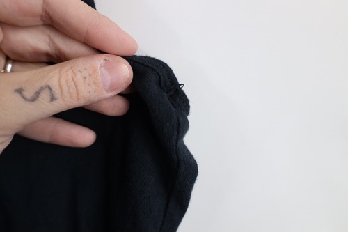 Blemish back bottom. Loose thread left armpit. Graphics, color faded. Pilling