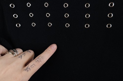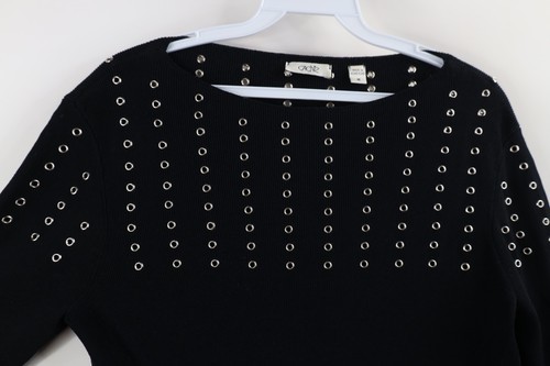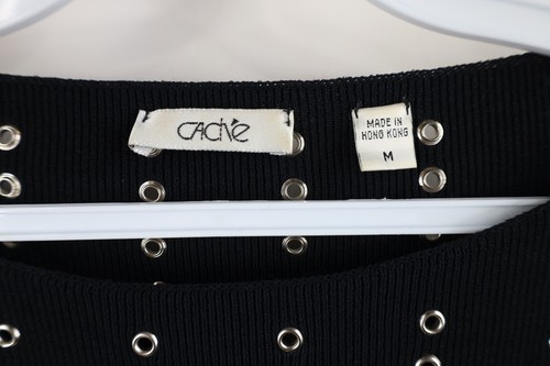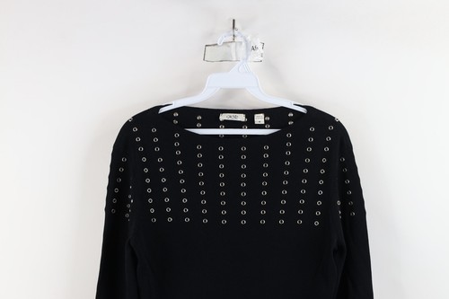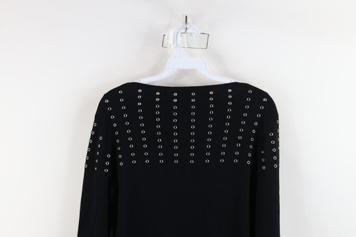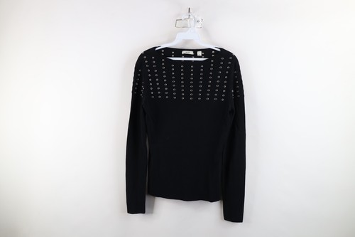 Vintage 90s Cache Womens Medium Babydoll Rivet Ribbed Knit Stretch Sweater Black