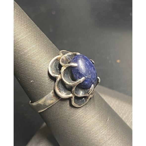 VINTAGE TAXCO 925 STERLING SILVER AND LAPIS LASULI RING SIZE 7.25 SKY