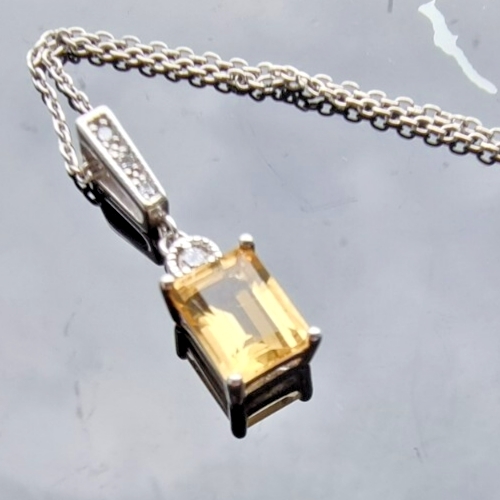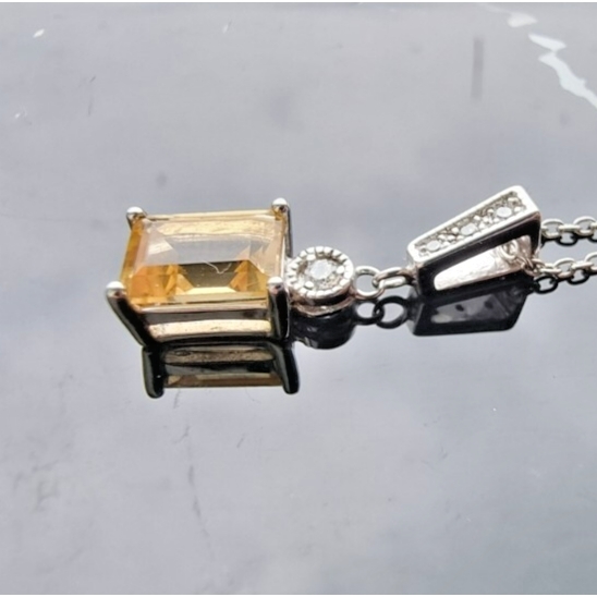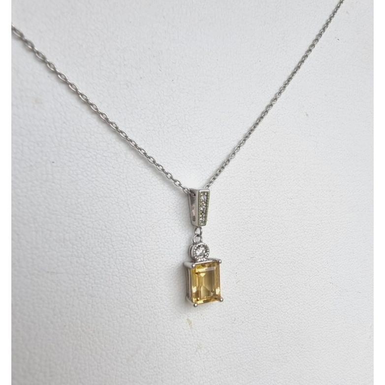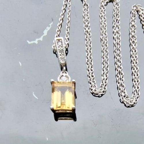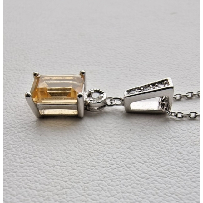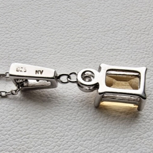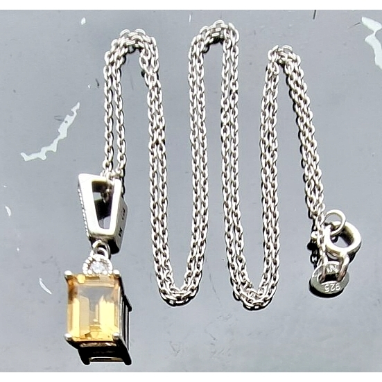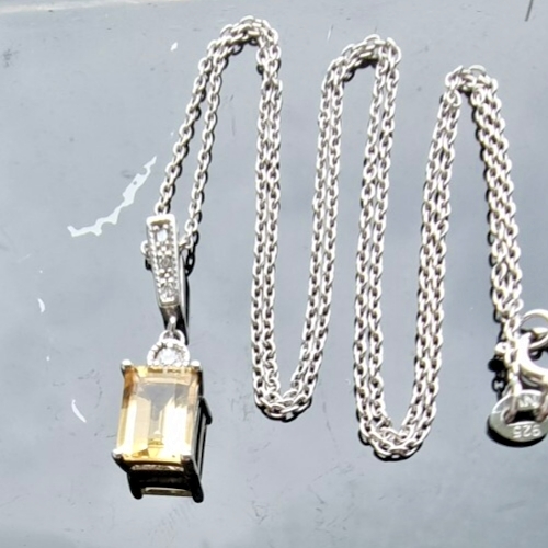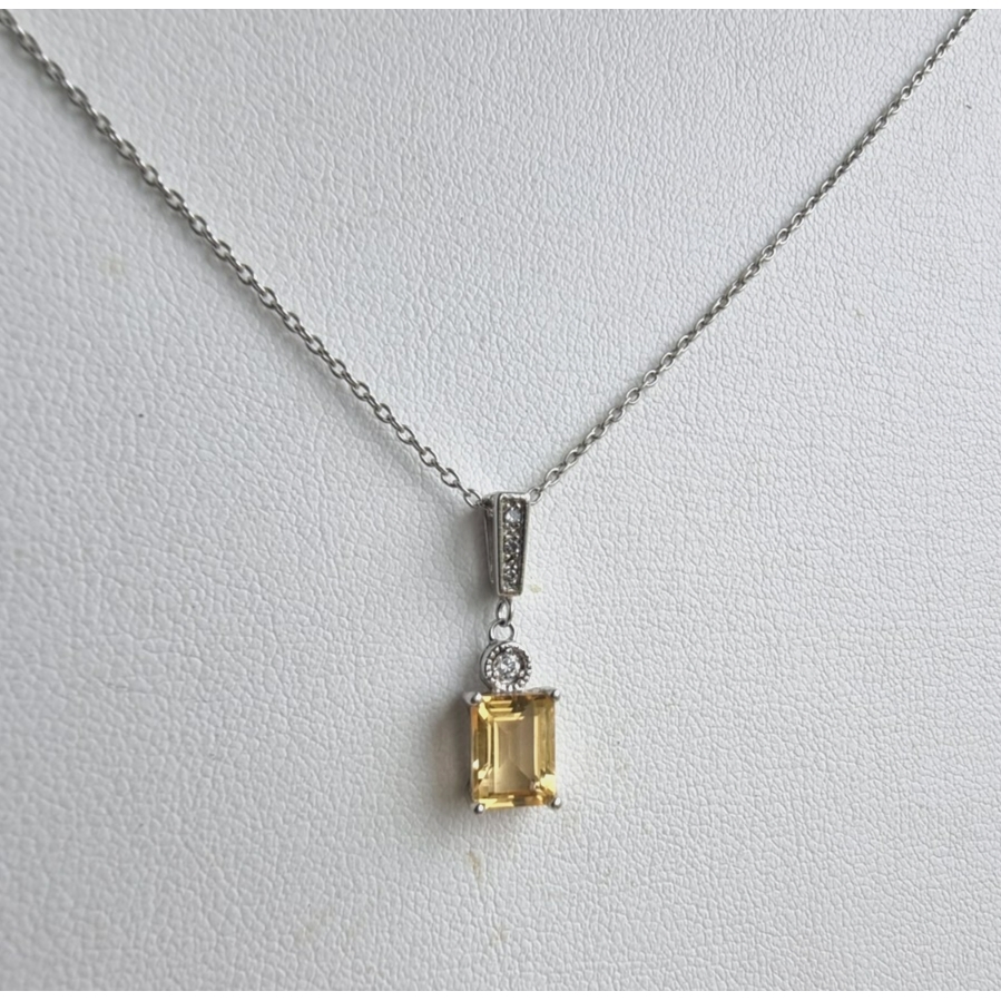 DAINTY 925 STERLING SILVER EMERALD SHAPE 8x6 mm. CITRINE NECKLACE AT