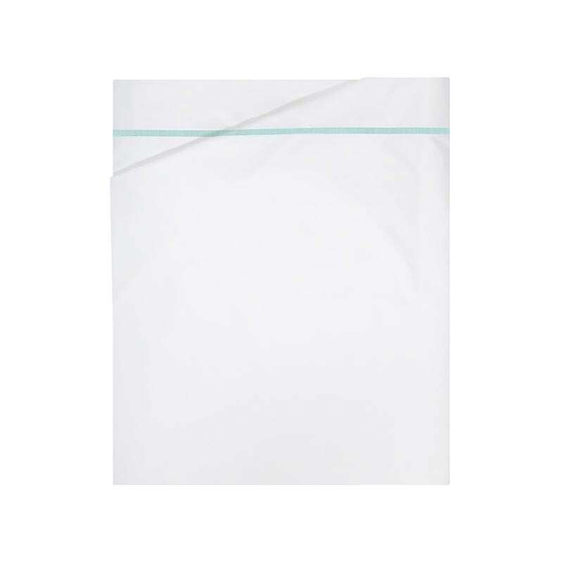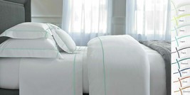 Yves Delorme Athena White King Duvet Set 3PC Aqua Lagon Stripe Percale 500TC NEW
