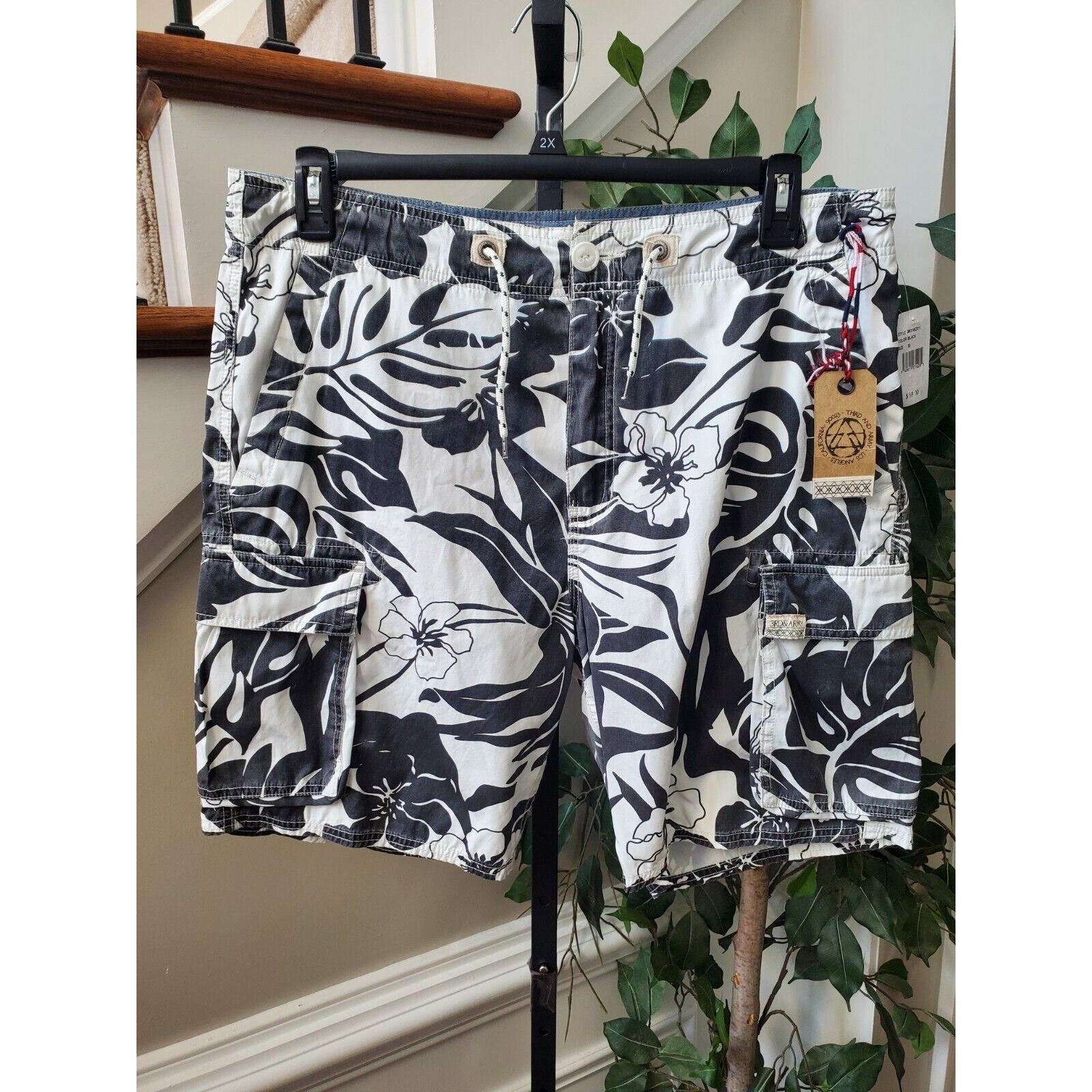 3RD & Army Men's Black Floral Polyester Pull On Pockets Swimwear Shorts Size 36