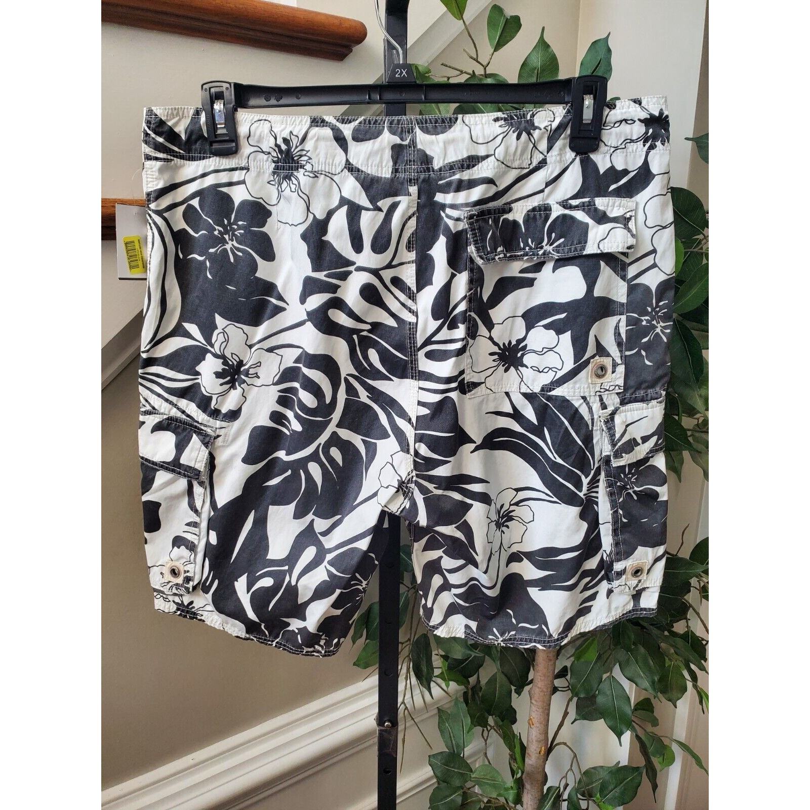 3RD Army Men's Black Floral Polyester Pull On Pockets Swimwear Shorts Size 36.