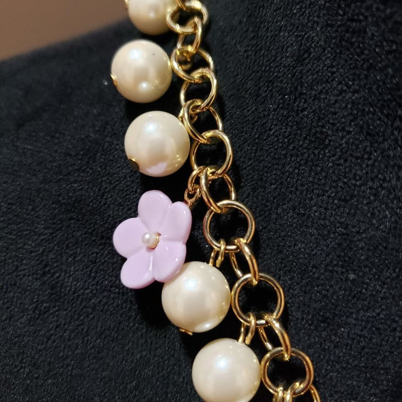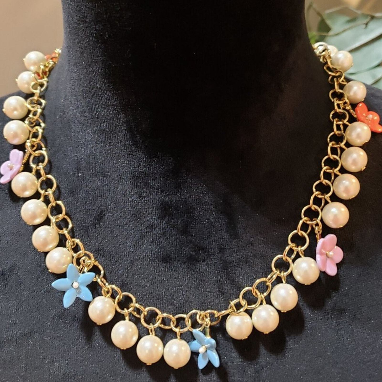 Ann Taylor Womens Gold Tone Faux Pearls Flower Charms Necklace with Hook & Eye