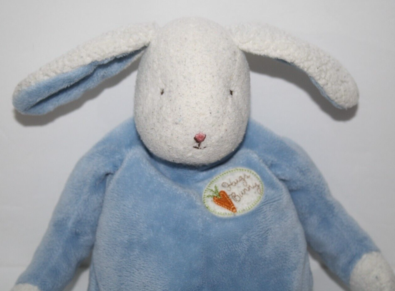 Bunnies by the Bay, Hugs Bunny, Approx 14 inch, Carrot Chest, Blue and White Plush, Sherpa, Soft Toy, Stuffed Animal