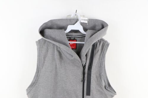 Nike Womens Size Large Spell Out Tech Fleece Full Zip Cape Vest Hoodie Gray