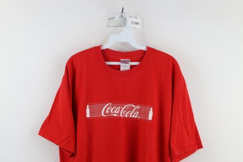 Vtg 90s Coca Cola Mens XL Faded Spell Out Script Box Logo Short Sleeve T-Shirt