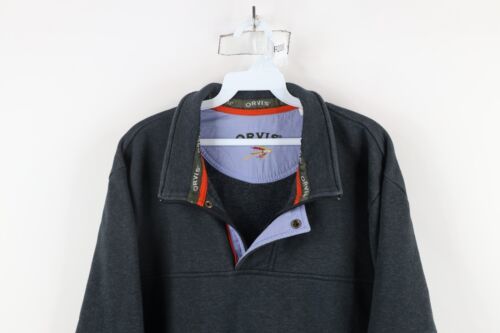 Vintage Orvis Mens Large Faded Blank Half Zip Heavyweight Pullover Sweatshirt