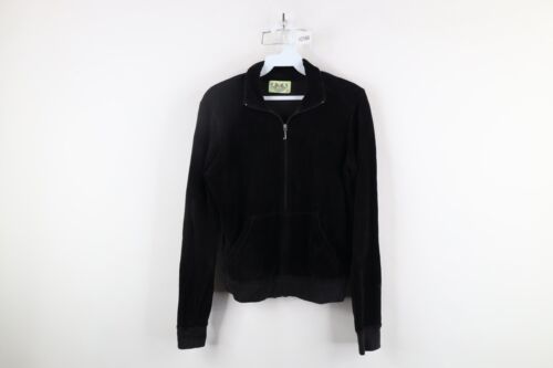 Vtg 90s Y2K Juicy Couture Womens Large Distressed Velvet Velour Jacket Black USA