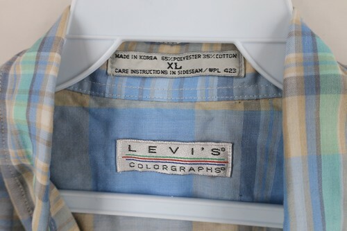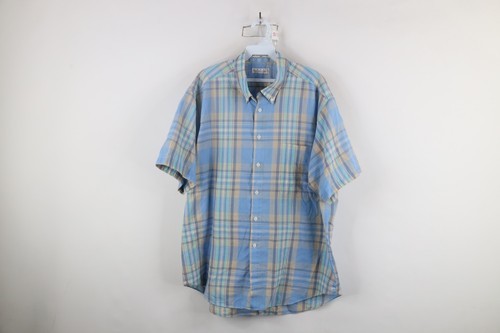 Vintage 80s Levis Mens XL Faded Rainbow Plaid Short Sleeve Button Down Shirt