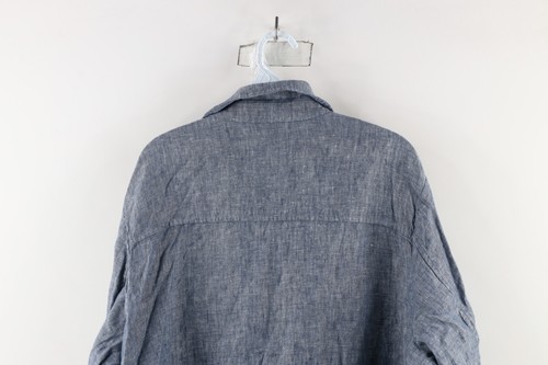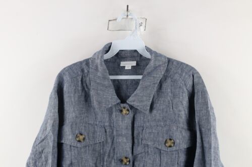 J Jill Love Linen Womens 2X Big Pocket Tie Linen Collared Button Shirt Blue