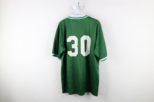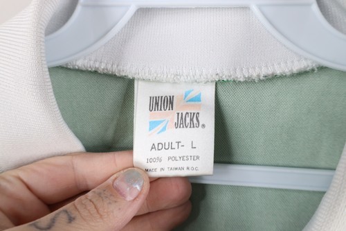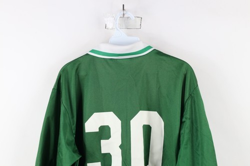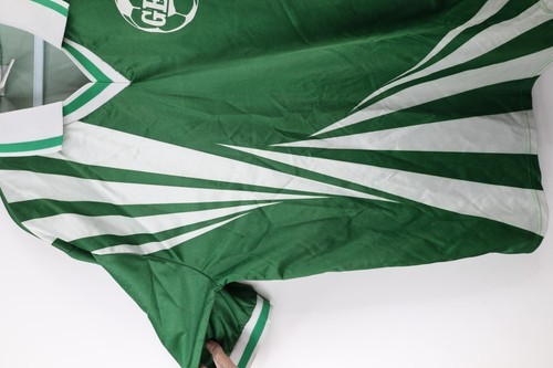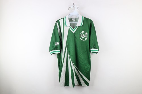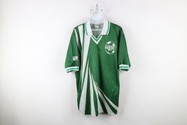 Vintage 90s Mens Large Geometric Collared Short Sleeve Soccer Jersey Green White
