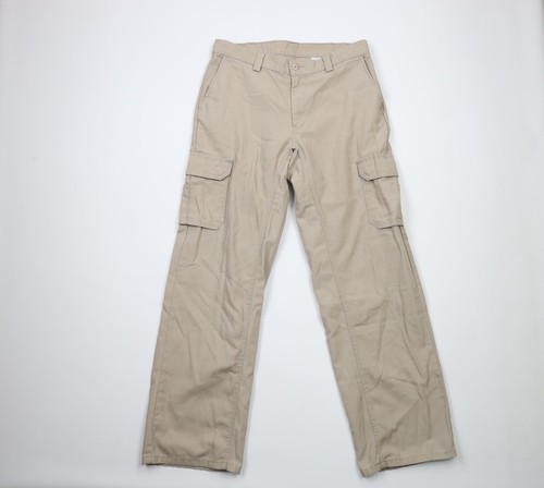 Vintage Wrangler Mens 34x34 Distressed Relaxed Fit Wide Leg Cargo Pants Beige