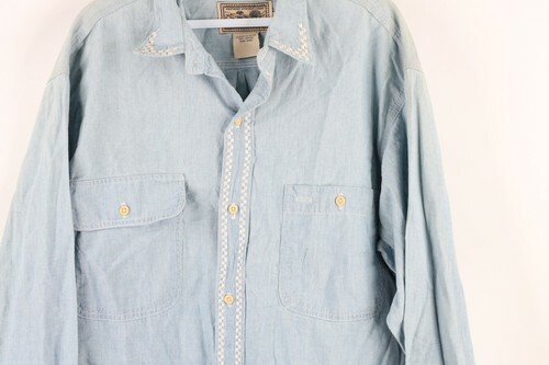 NOS Vintage 90s Calvin Klein Mens L Checkered Chambray Collared Button Shirt USA
