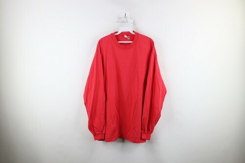 Vintage 90s Hanes Beefy Mens Size XL Faded Blank Long Sleeve T-Shirt Red Cotton