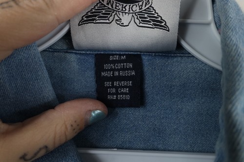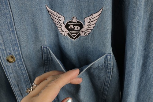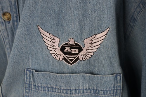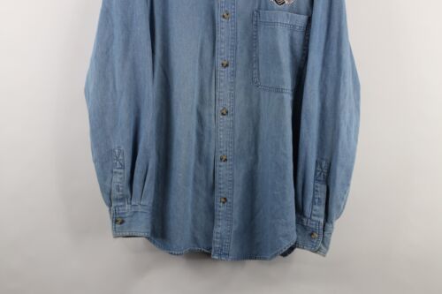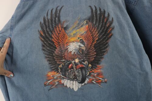 Vintage Y2K 2000 Mens M Distressed Motorcycle Eagle Lightning Denim Button Shirt