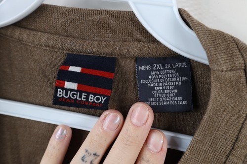 Vtg 90s Bugle Boy Mens 2XL Faded Spell Out Baggy Fit Short Sleeve T-Shirt Brown