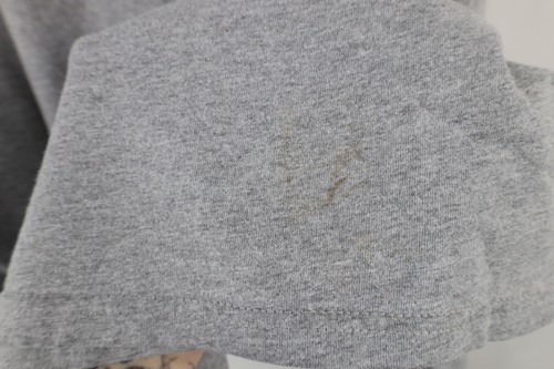 Blemishes front bottom and back bottom. Graphics distressed. USA made