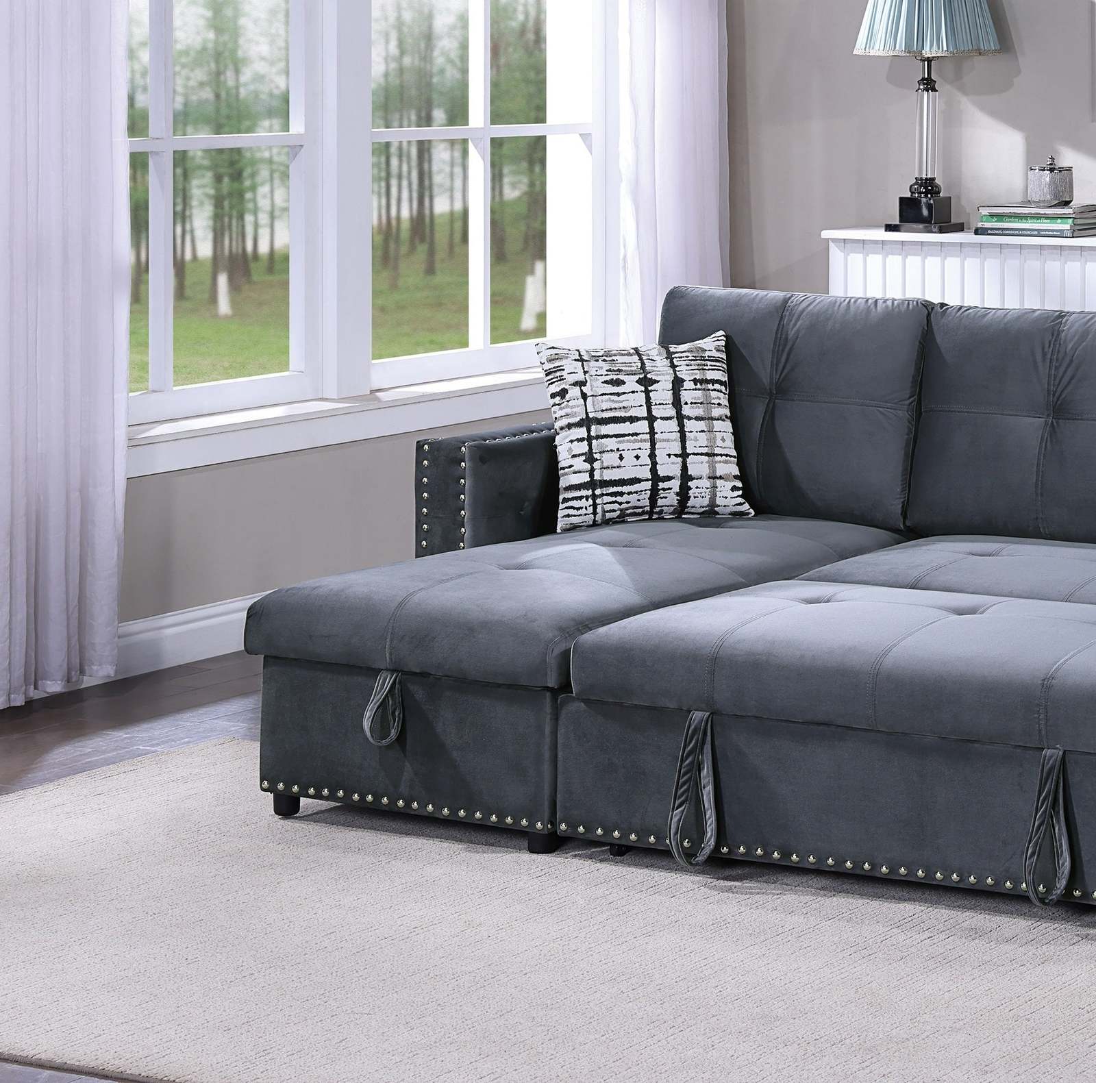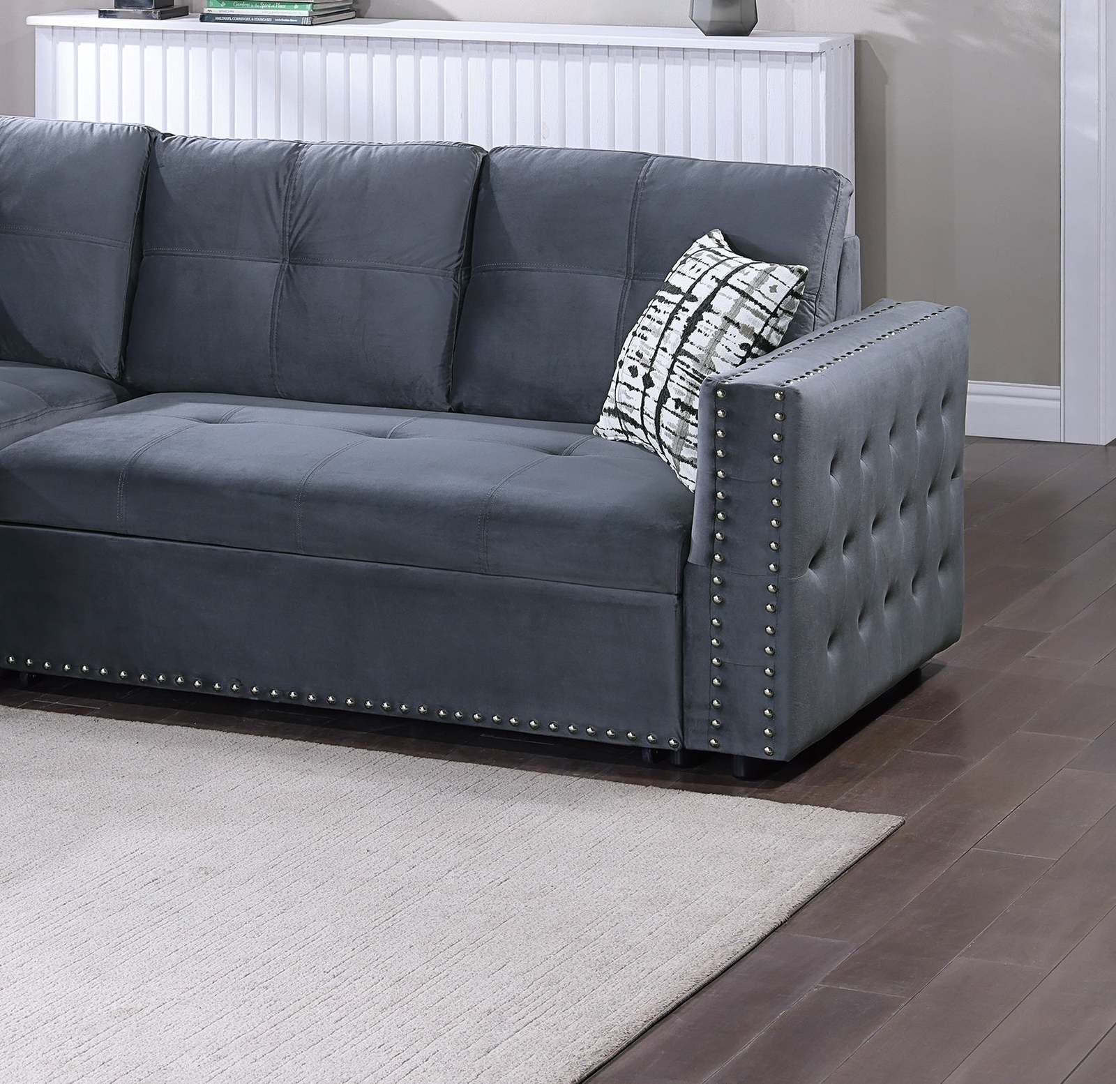Gray Velvet Convertible Sectional Sofa Bed and 46 similar items