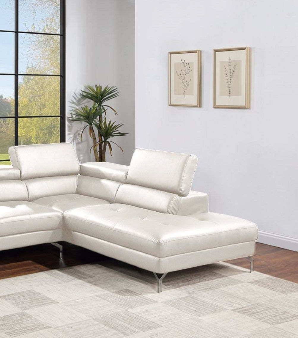 The future meets the present with this luxurious 2-piece sectional covered in a smooth texture with wide seating and a plush armrest. Each headrest is adjustable for comfort and style. Available in Black, or White (Faux Leather).