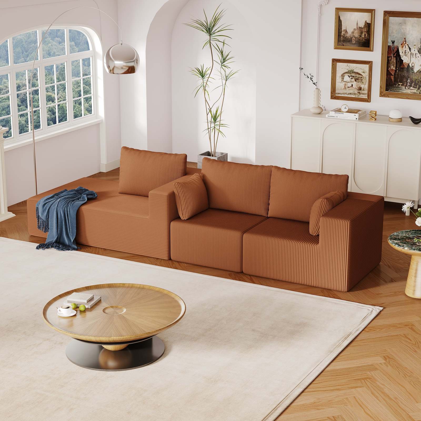 Reddish Brown Corduroy L-Shape Sectional Sofa and 47 similar items