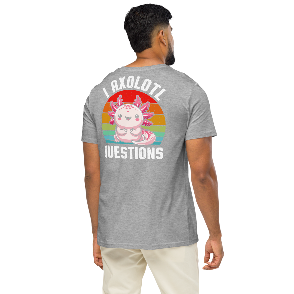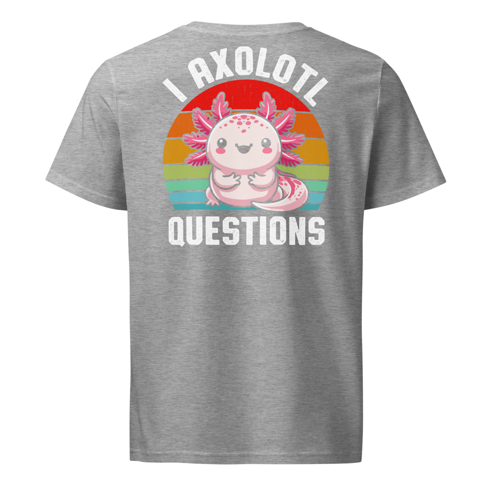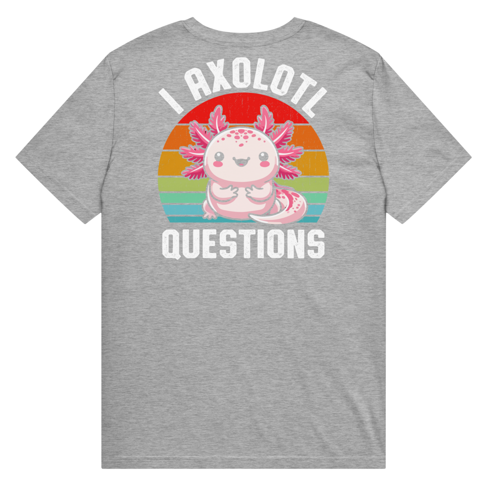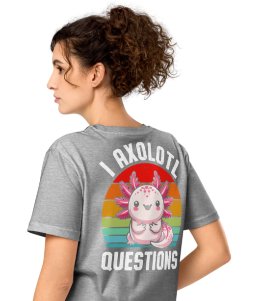 Soft, sustainable, and full of personality. This unisex t-shirt in Heather Grey is made from 100% organic combed ring-spun cotton, offering cloud-like comfort in a light, breathable fit. The minimalist front keeps it versatile, while the back features a charming axolotl print—adding a splash of whimsy to your everyday essentials.