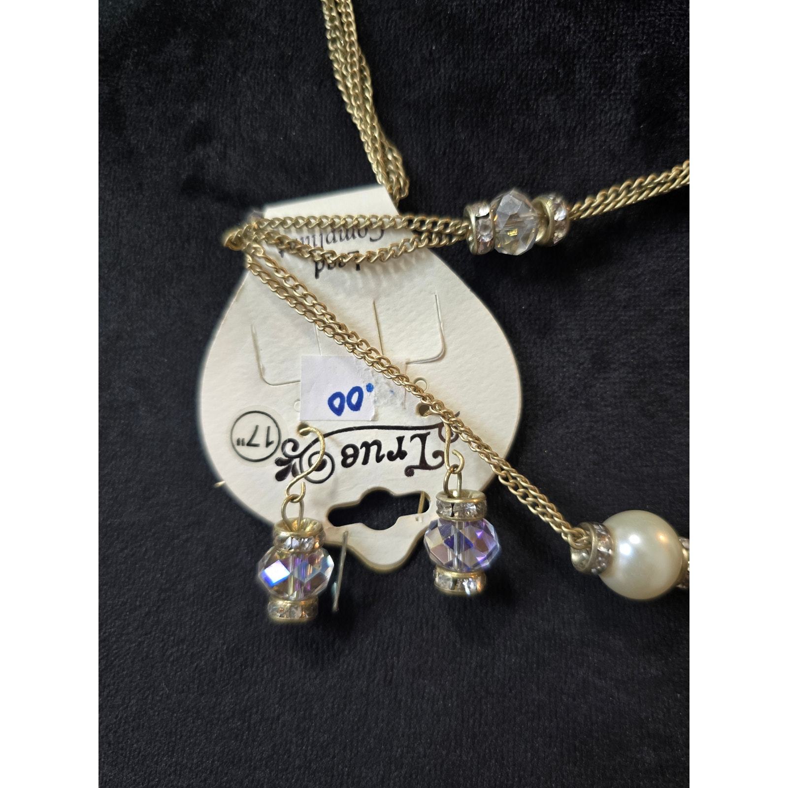 Women's Gold Tone Necklace Set with Pearls and Faceted Crystal Beads