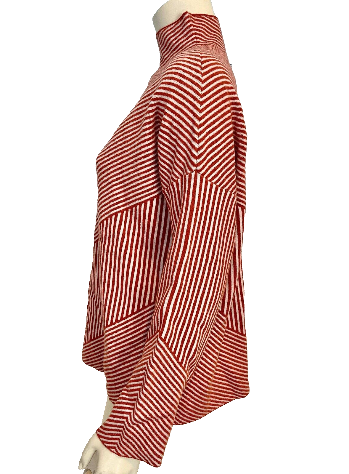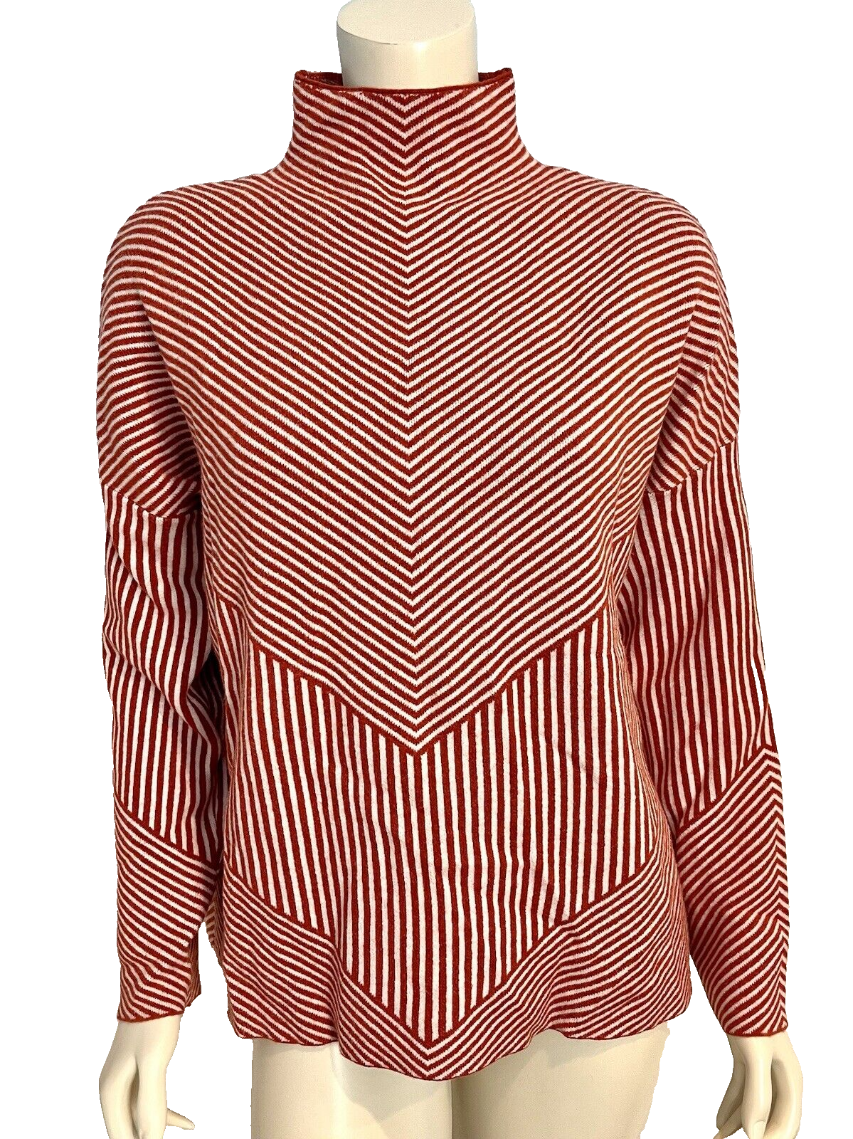 Cynthia Rowley Orange and White Striped Long Sleeve Turtleneck Sweater