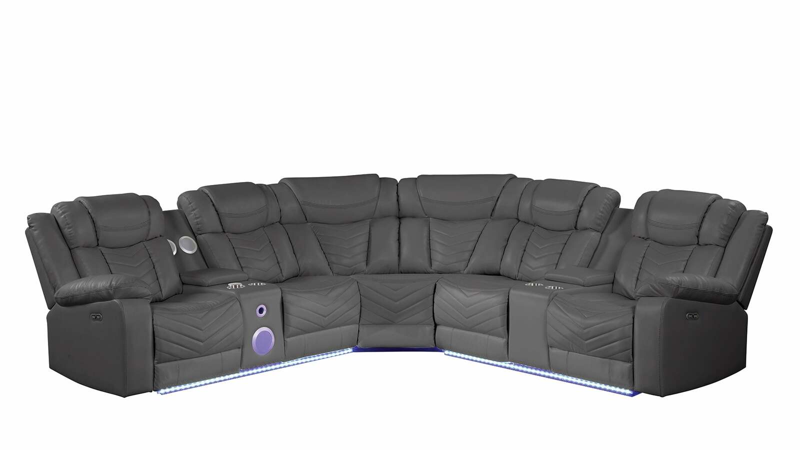 Gray Faux Leather Recliner Sectional w/ USB-C