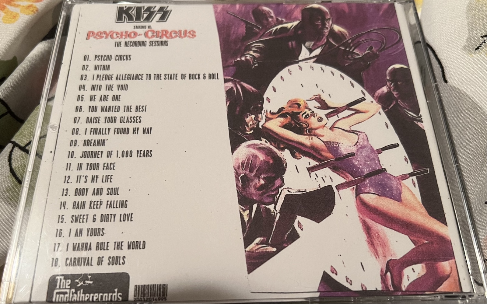 Please read description before purchasing. These are previously unreleased studio recorded demos and outtakes from the Psycho-Circus album featuring all 4 original members of Kiss. Very good studio recordings. CD with a matted photo label.