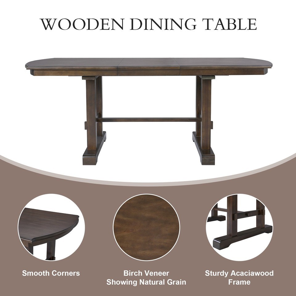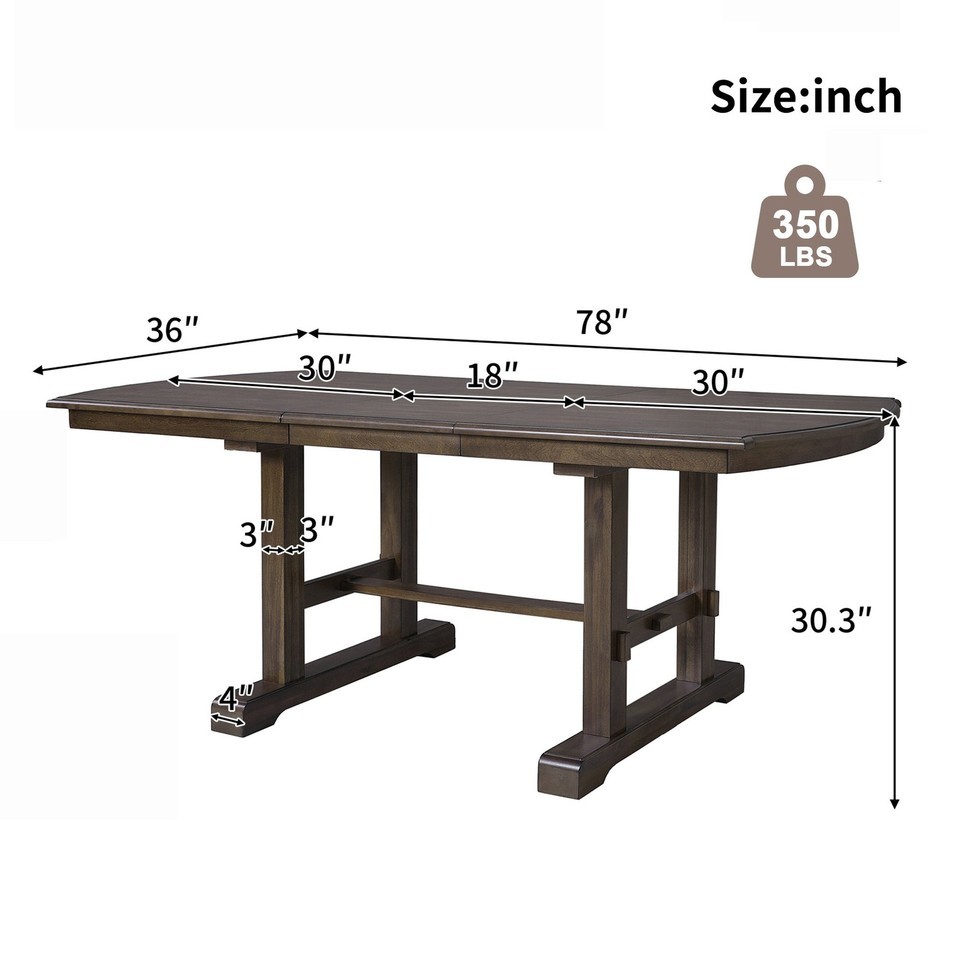 EXPANDABLE DESIGN: This versatile expandable dining table comes with smooth wood rails for quick and easy expansion. The compact dimensions are 60 inches long x 36 inches wide x 30.3 inches high, and it can be expanded to 78 inches by adding a separate extension panel in the center. A charming dining experience from breakfast to dinner, this spacious table easily seats 4-8 people, making it ideal for everyday meals and gatherings.