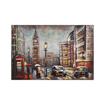 Features City Street Mixed Media Iron Hand Painted Dimensional Wall Art 100% hand painted work of art Ready to hang on wall Specifications Weight: 20.5 lbs
