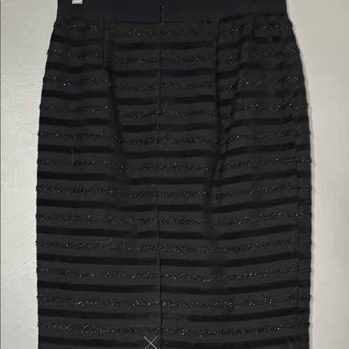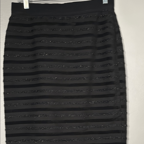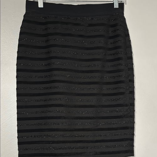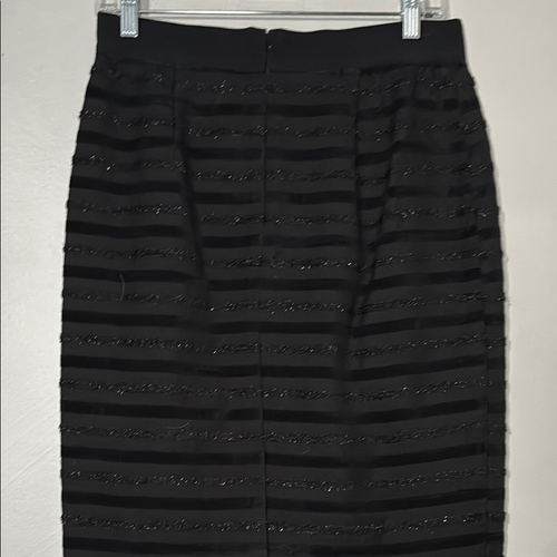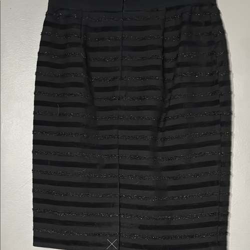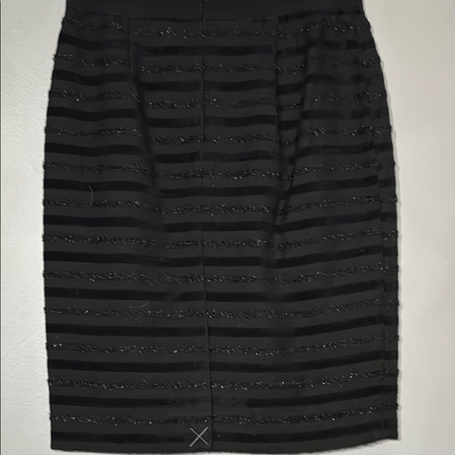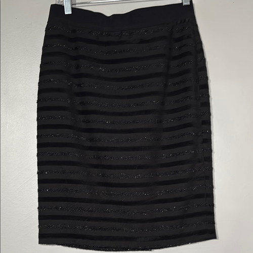 This elegant black pencil skirt by Ann Taylor is designed with a knee-length cut, making it ideal for both cocktail events and professional settings. Its sleek silhouette and classic style offer a polished and sophisticated look. Crafted for versatility, this skirt is a timeless addition to any wardrobe.