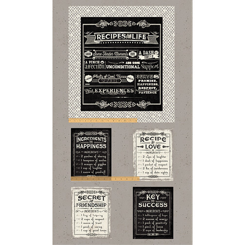 23.5" X 44" Panel Life's Recipes Kitchen Phrases Friendship Happiness Love Success Cotton Fabric Panel (52436P-1)