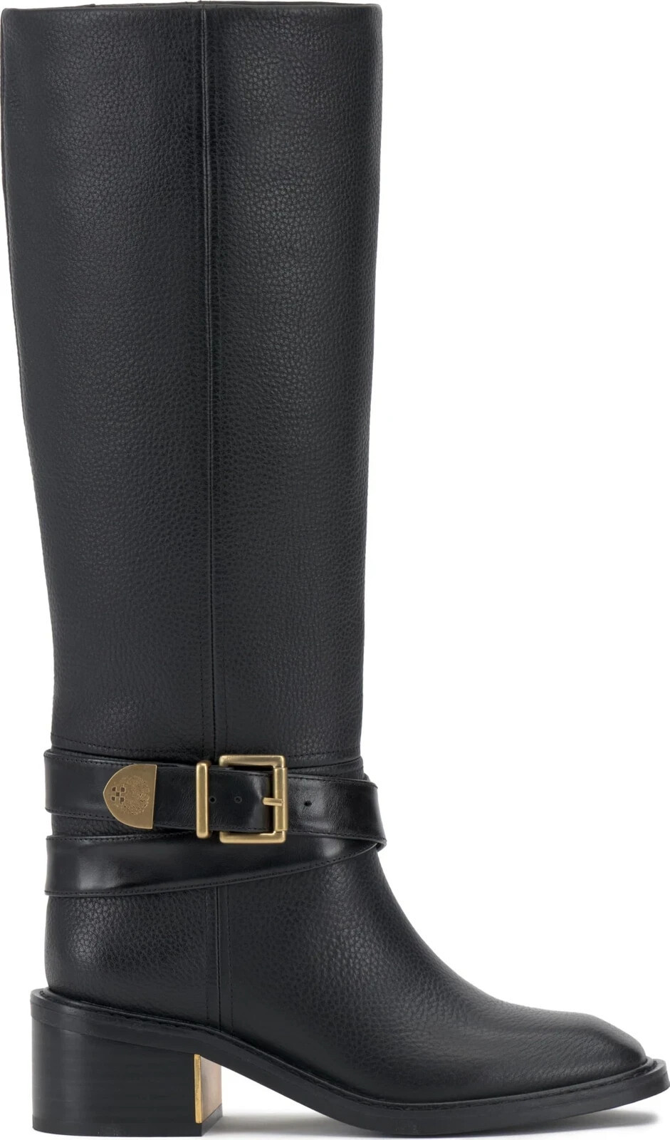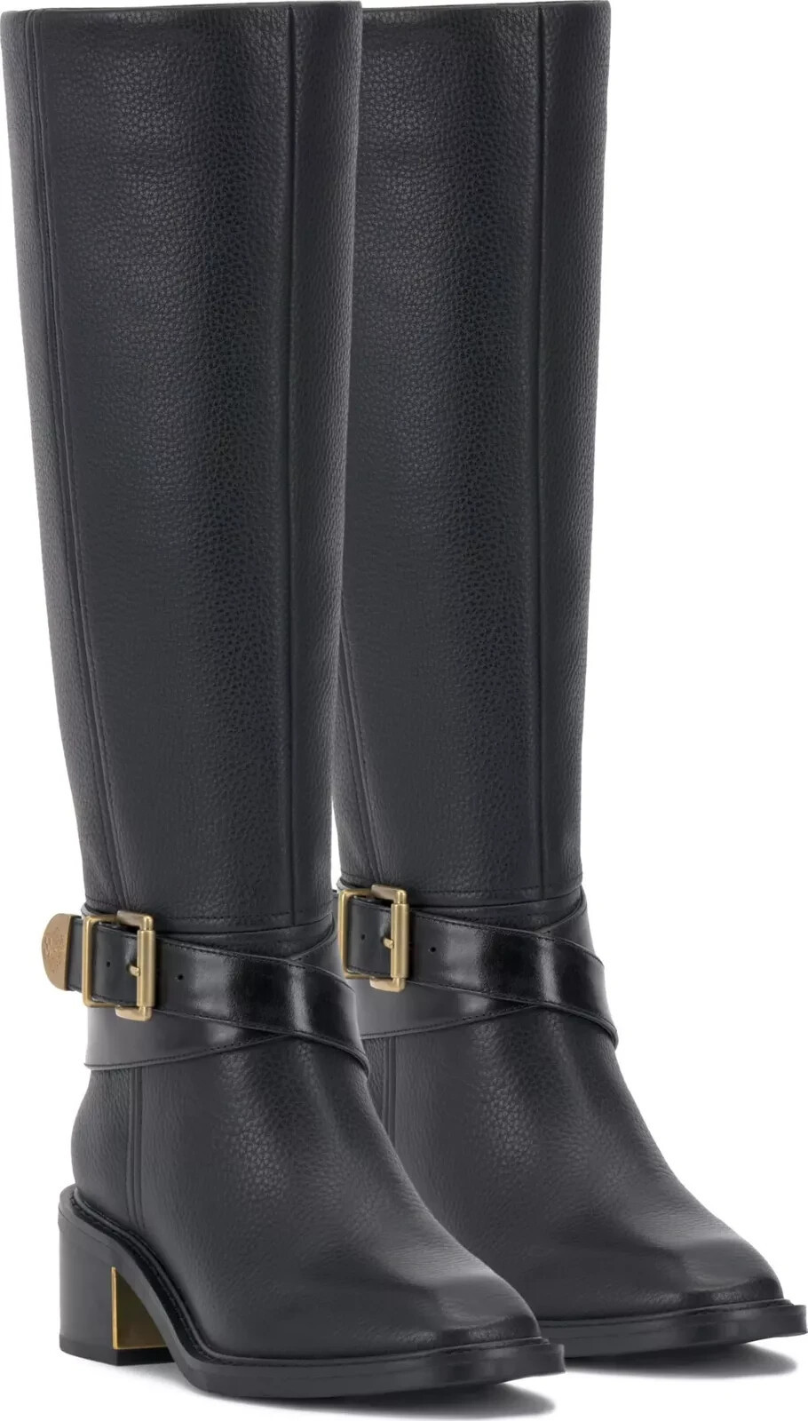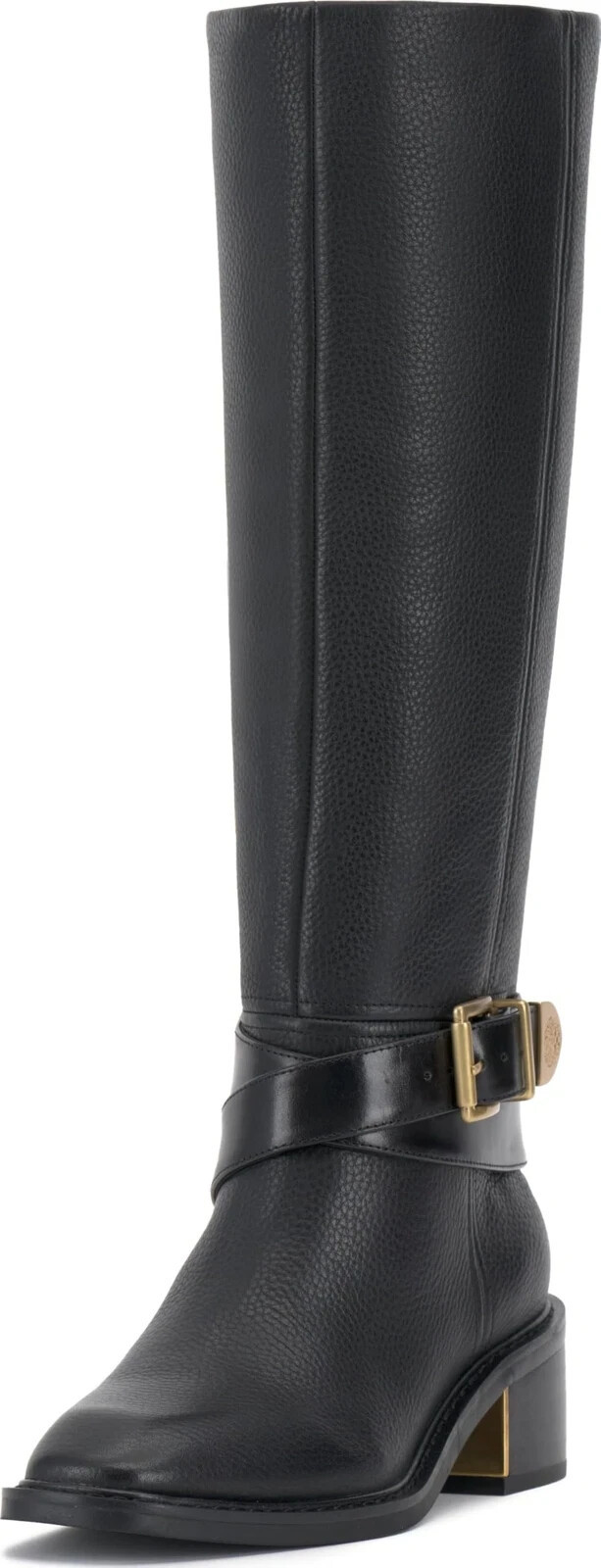 Wraparound ankle straps and buckles lend equestrian-inspired details to stylish block heels in the Vince Camuto Gini extra wide-calf riding boots.