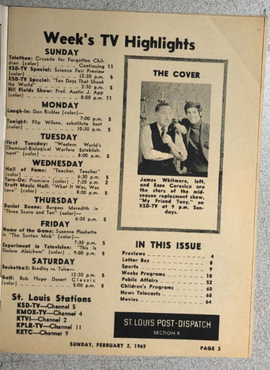 TV MAGAZINE St. Louis (MO) Post-Dispatch February 2, 1969 James Whitmore cover