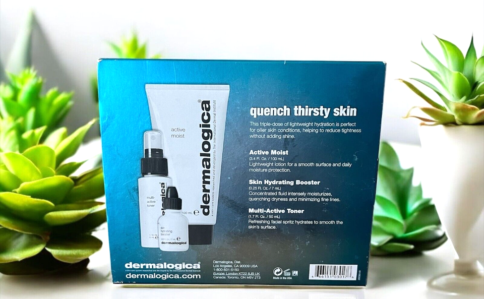 DERMALOGICA SET: ACTIVE MOIST 3.4oz, SKIN HYDRATING BOOSTER .25oz, Toner 50mL