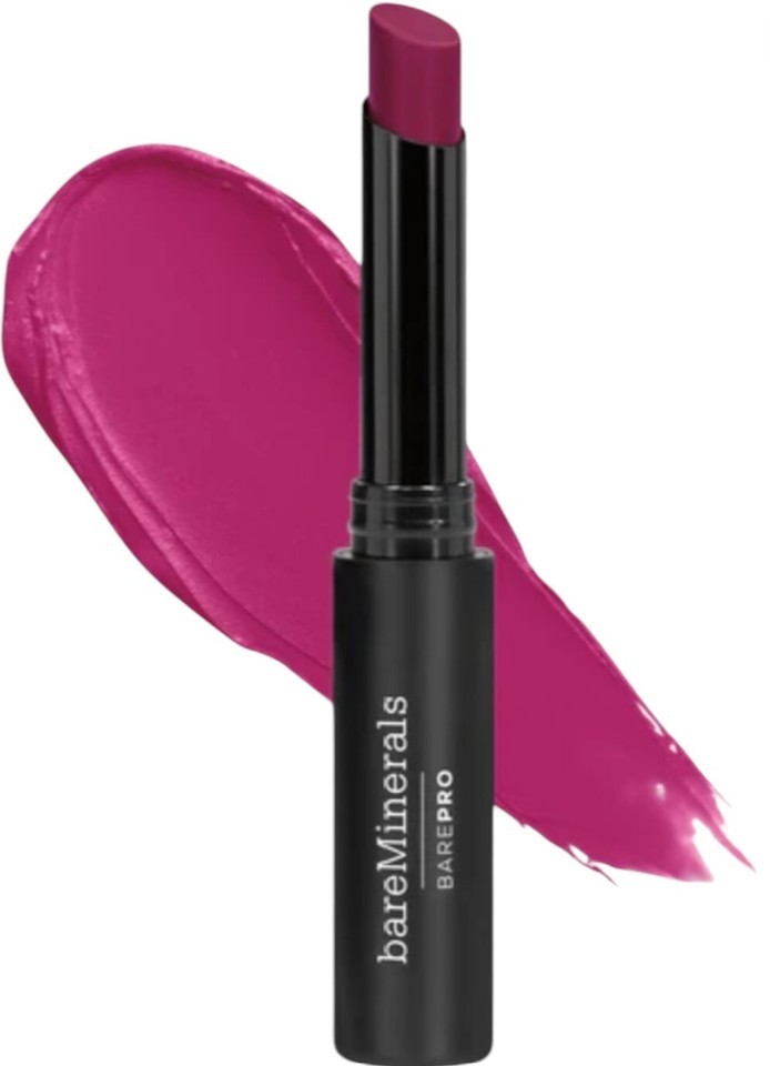 Introducing BareMinerals BAREPRO Longwear Lipstick, our slimmest and most nourishing lipstick yet. This vegan formula blends mineral pigments and lipids naturally found in skin to provide full coverage color that lasts up to eight hours. The weightless gel formula glides effortlessly across your lips in one swipe, forming a protective barrier to prevent moisture loss. Whether you're headed to the office or out for drinks with friends, our long-lasting lipstick will keep your lips looking gorgeous all day. Try it today!
