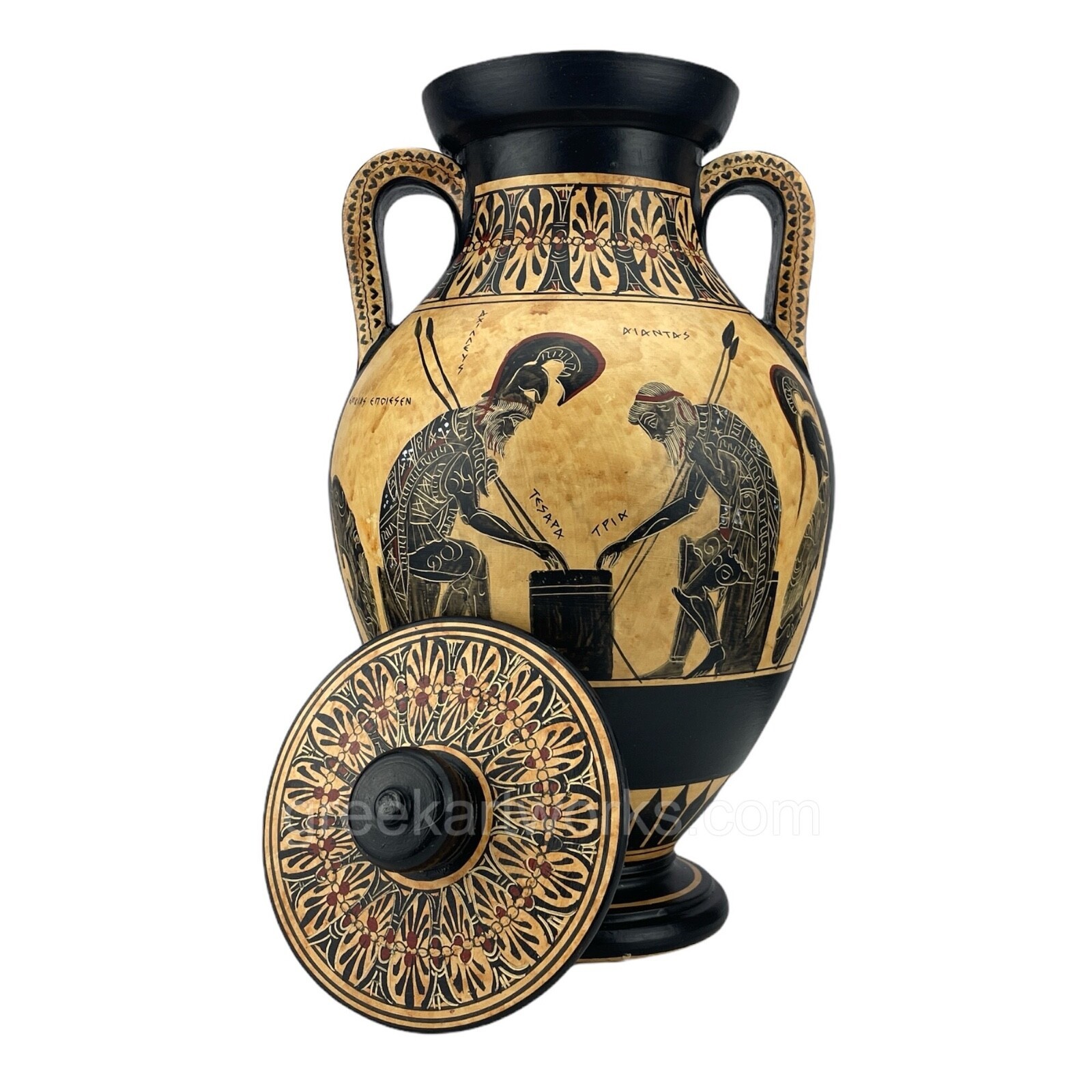Achilles & Ajax Exekias Ancient Greek Amphora Vase Museum Replica Handmade