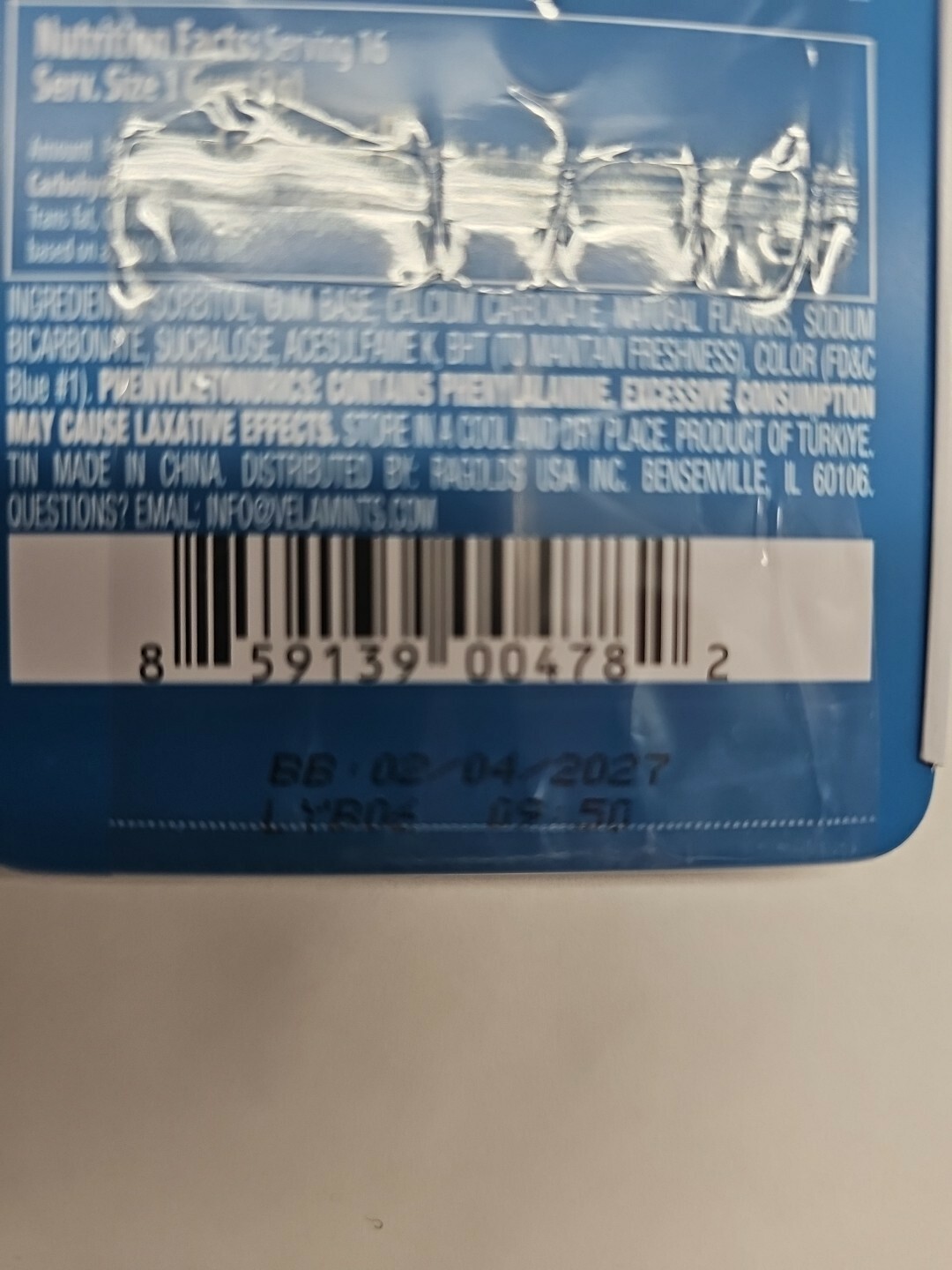 The Velamints Sugar Free Gum Peppermint pack includes 4 tins, with each tin containing 16 pieces of gum. The gum is sugar-free and has a minty flavor, specifically peppermint. With an expiration date of 04/2027, this product is ideal for those looking for a convenient and tasty way to freshen their breath on the go. Each serving has less than 5 calories, making it a low-calorie option for those trying to manage their sugar intake.