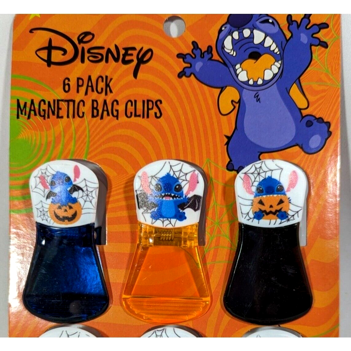 Disney Stitch Halloween Magnetic Bag Clips Set of 6 Cartoon Spider Webs Gift NIP