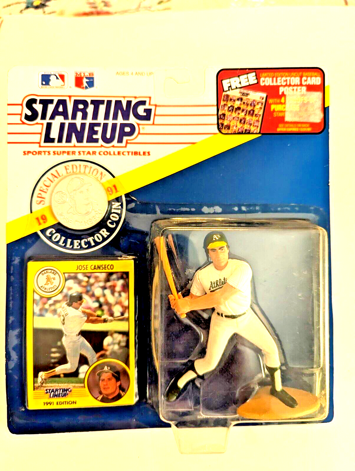 1991 Kenner Starting Lineup Jose Canseco Action Figure Collector Coin Card Gift