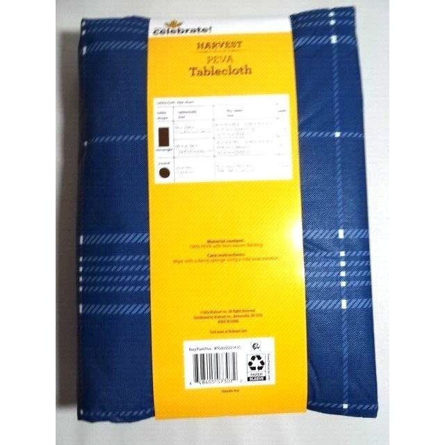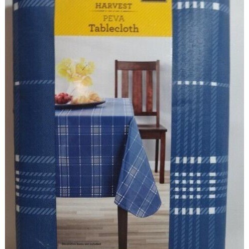 PLaid Navy Blue White PEVA Kitchen Tablecloth 60 x 84-in Polyester Backing NIP