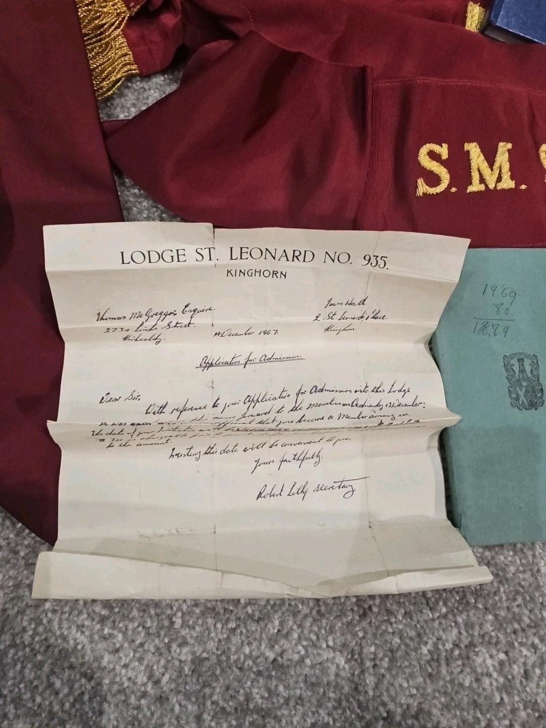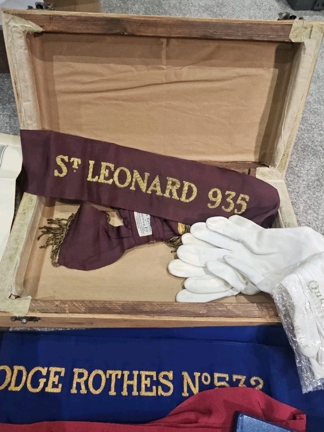 Vintage Freemason Regalia & Documents + Wooden Case – Lodge St. Leonard 935...