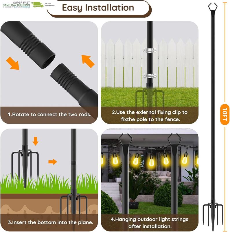 Sturdy and Reliable: Designed with a bottom fork featuring five sturdy claws, our String Light Poles ensure a solid foundation. This innovative design enhances stability, keeping your string lights securely in place even during windy conditions.