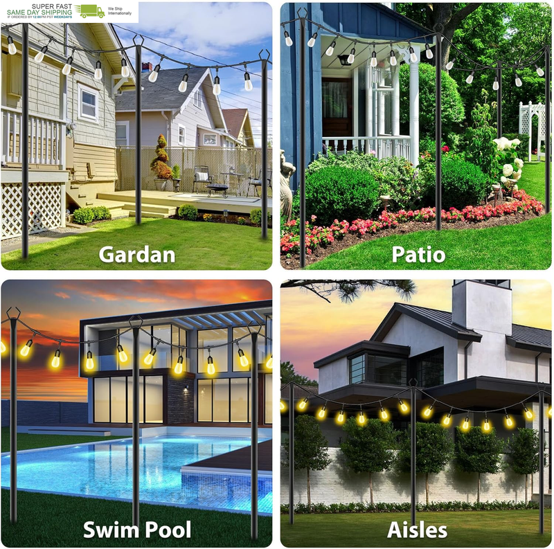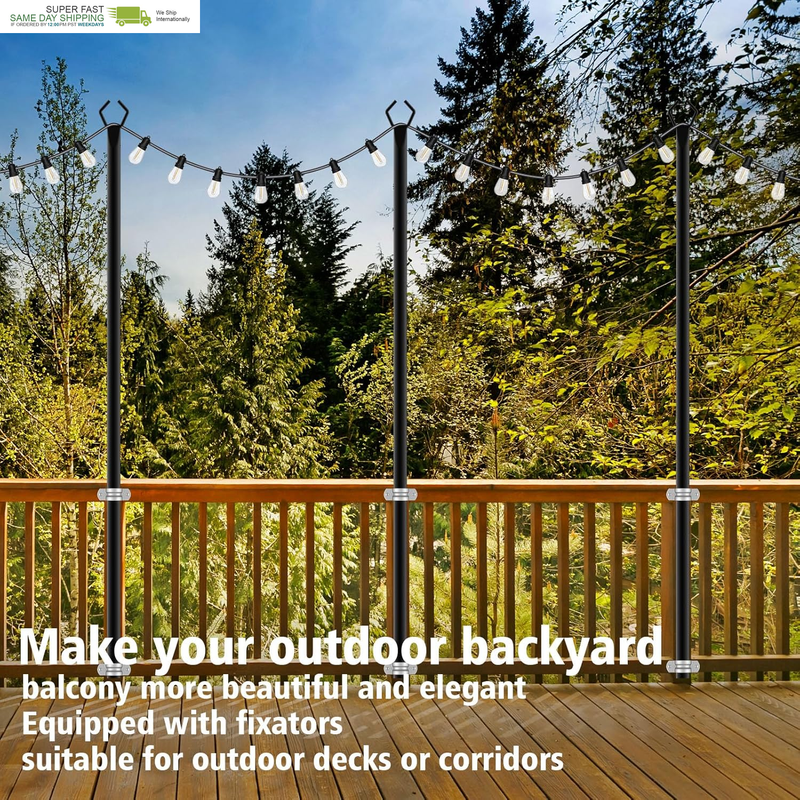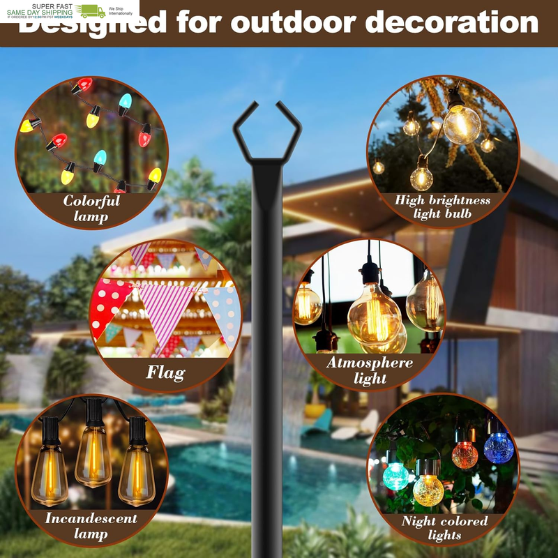 Versatile Compatibility: Our String Light Poles are designed to complement various lighting fixtures and equipment, ensuring a secure fit that's easy to install and won't easily detach. Whether you're hanging string lights, lanterns, or other decorative elements, our poles provide a stable and versatile solution for all your outdoor lighting needs.