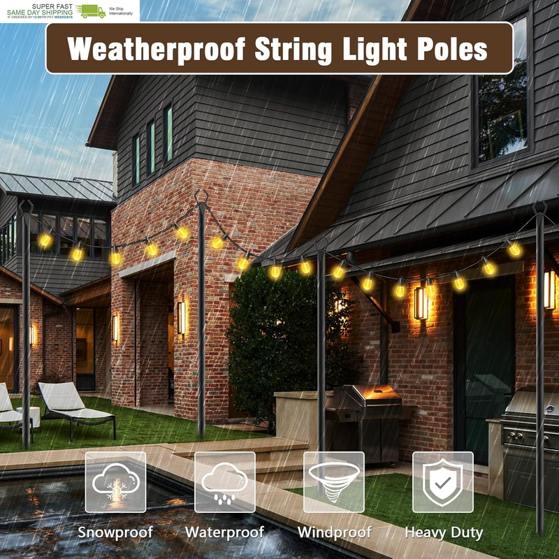 Built for Durability and Ease: Designed with durability in mind, our String Light Poles are crafted to withstand the elements while maintaining their elegant appearance. Easy to install and maintain, they ensure hassle-free enjoyment for years to come.